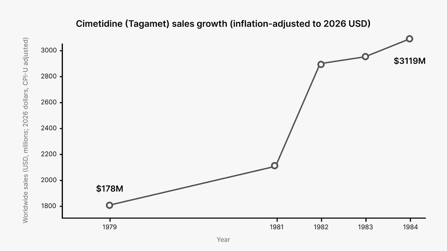Then the drug era arrived and strengthened the acid paradigm rather than weakening it. Cimetidine hit the market in the mid-1970s and became foundational therapy. It worked. Patients felt better. The mechanism was elegant. The money was extraordinary.